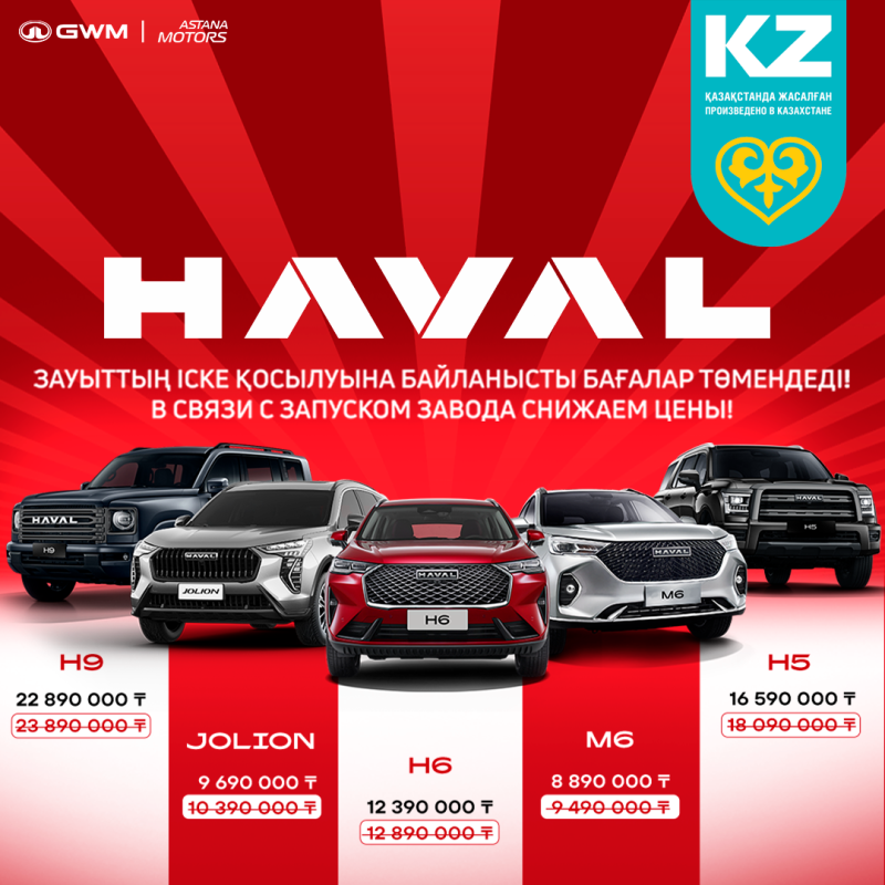 Astana Motors Haval көліктерінің өндірісін іске қосып, бағасын төмендетті
